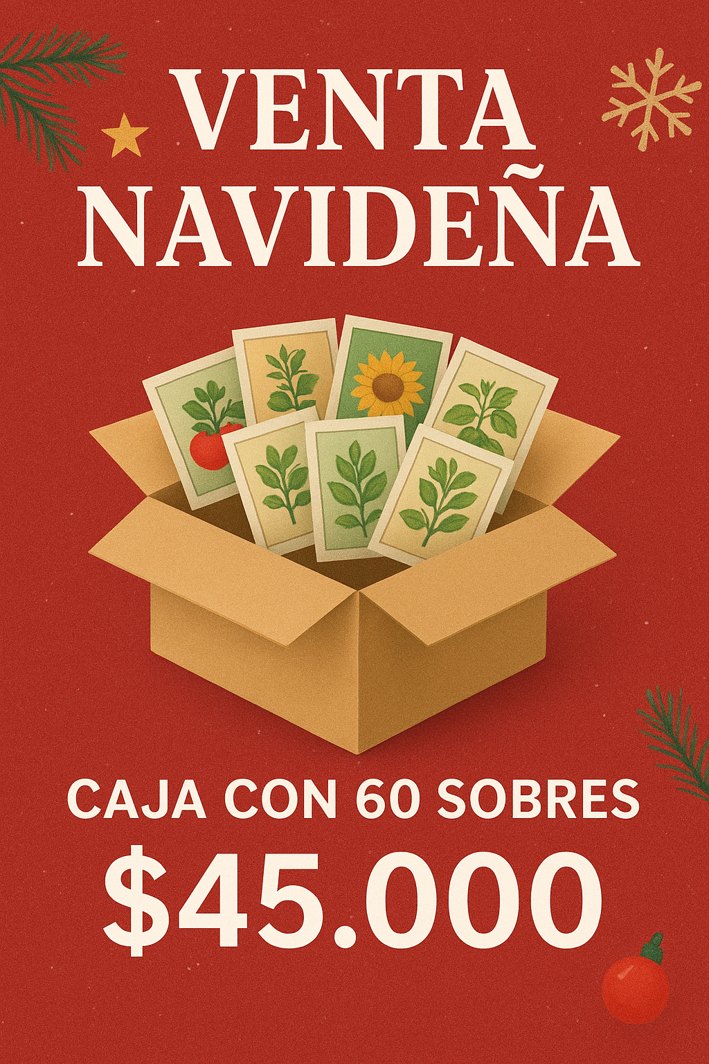 Producto anterior Caja de 60 sobres de semillas navidad $45.000 5 disponibles Caja de 60 sobres de semillas navidad cantidad Añadir al carrito Categoría: Semillas Productos relacionados Vista rápida Oferta -29% Vista rápida SemillasSemillas de tomates cal ace $1.400 El precio original era: $1.400.$1.000El precio actual es: $1.000. Añadir al carrito Vista rápida Oferta -29% Vista rápida Semillas de flores, SemillasSemillas de equinacea purpurea $1.400 El precio original era: $1.400.$1.000El precio actual es: $1.000. Añadir al carrito Vista rápida Oferta -29% Vista rápida SemillasSemillas de kale crespo verde $1.400 El precio original era: $1.400.$1.000El precio actual es: $1.000. Añadir al carrito